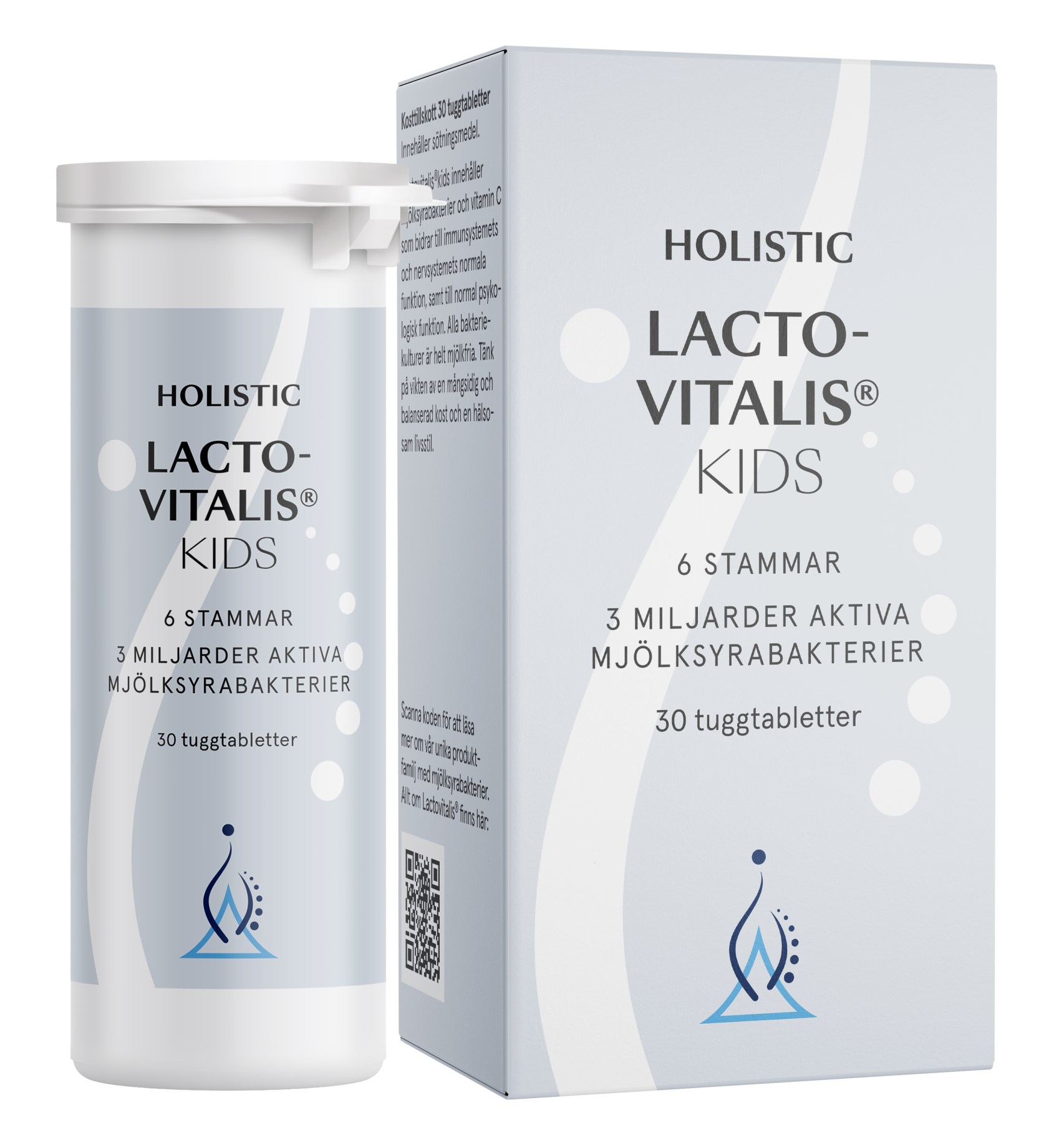 Holistics LactoVitalis Kids er en god tyggetablet med citronsmag, der indeholder op til tre milliarder levende mælkesyrebakterier. I vores tarme lever normalt mere end 500 forskellige arter af bakterier, der er en del af det vi kalder tarmfloraen.