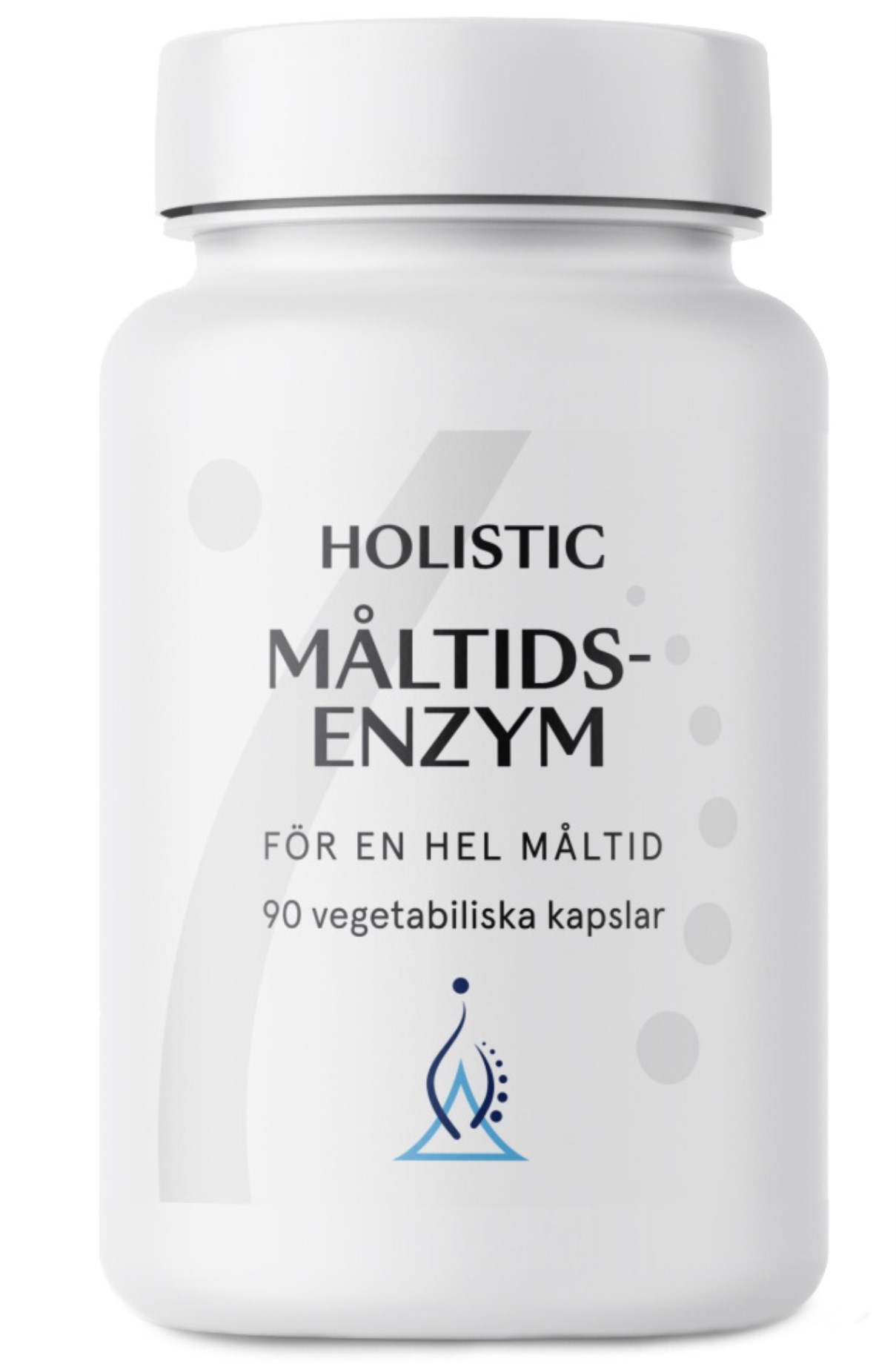 Holisitc Måltidsenzym er et kosttilskud, der indeholder vegetabilske fordøjelsesenzymer. I perioder med stress og dårlig kost kan vi nogle gange lide af en oppustet, urolig og luftig mave. I disse perioder og lejligheder kan et kosttilskud med fordøjelsesenzymer hjælpe dig og din krop lettere med at nedbryde mad og samtidig øge optagelsen af næringsstoffer fra mad. Holistic Måltidsenzym er et vegansk kosttilskud, der også kan tages af dig, der er veganer og indeholder blandt andet det kendte enzym lactase.