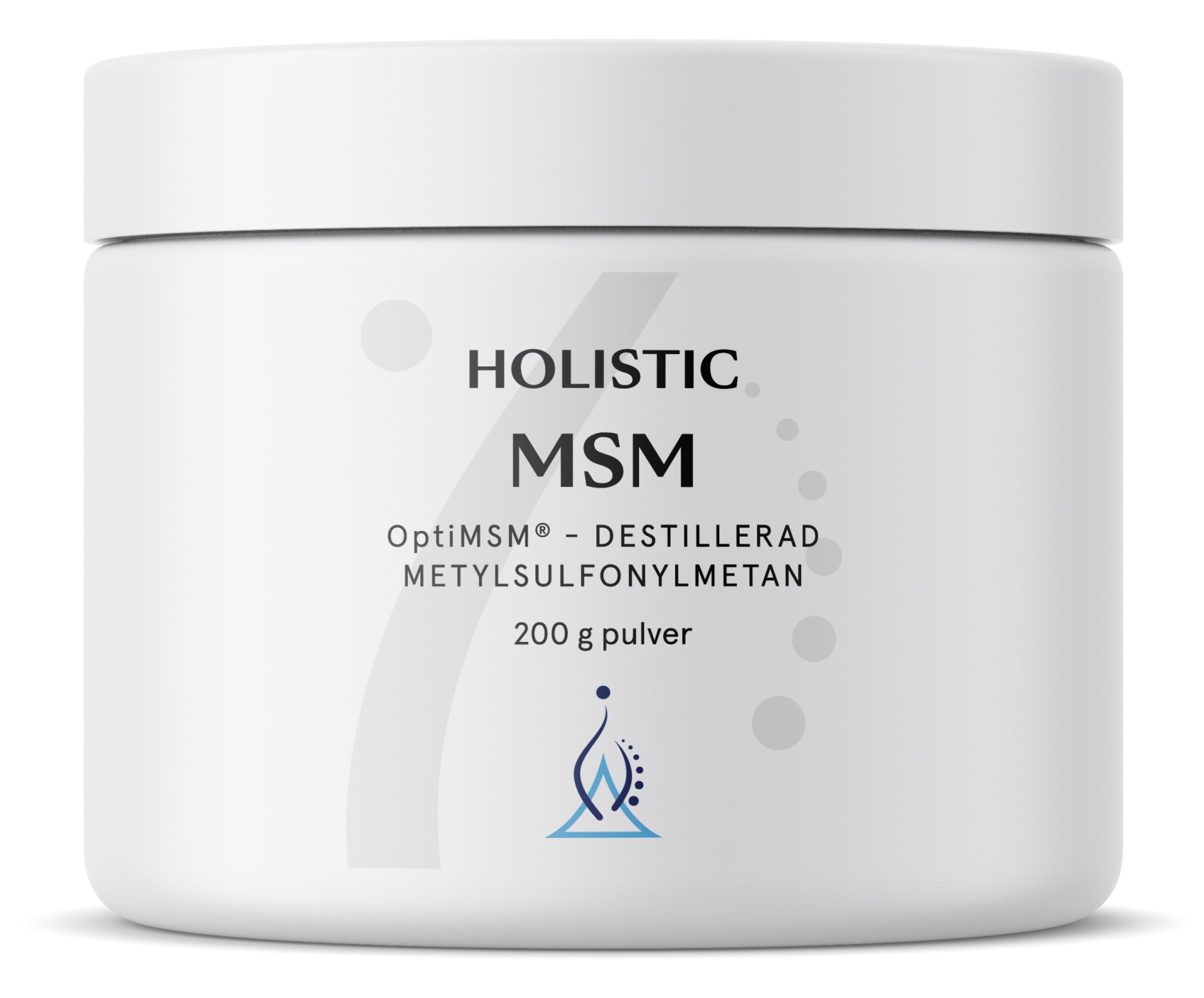 Svovlforbindelsen MSM findes naturligt i kroppen, men hvis du ønsker et ekstra supplement af MSM kan det være en fordel at benytte dette kosttilskud fra Holistic. Da MSM hjælper med at opbygge celler i kroppens proteinrige væv (dette inkluderer muskler, brusk, sener og bindevæv), er dette produkt fremragende til dig, der træner meget og vil give kroppen ekstra hjælp til at opbygge muskler. MSM findes også i fødevarer som æg, rødt kød og bælgfrugter og absorberes bedst af kroppen, hvis du spiser det sammen med C-vitamin og omega-3-fedtsyrer.