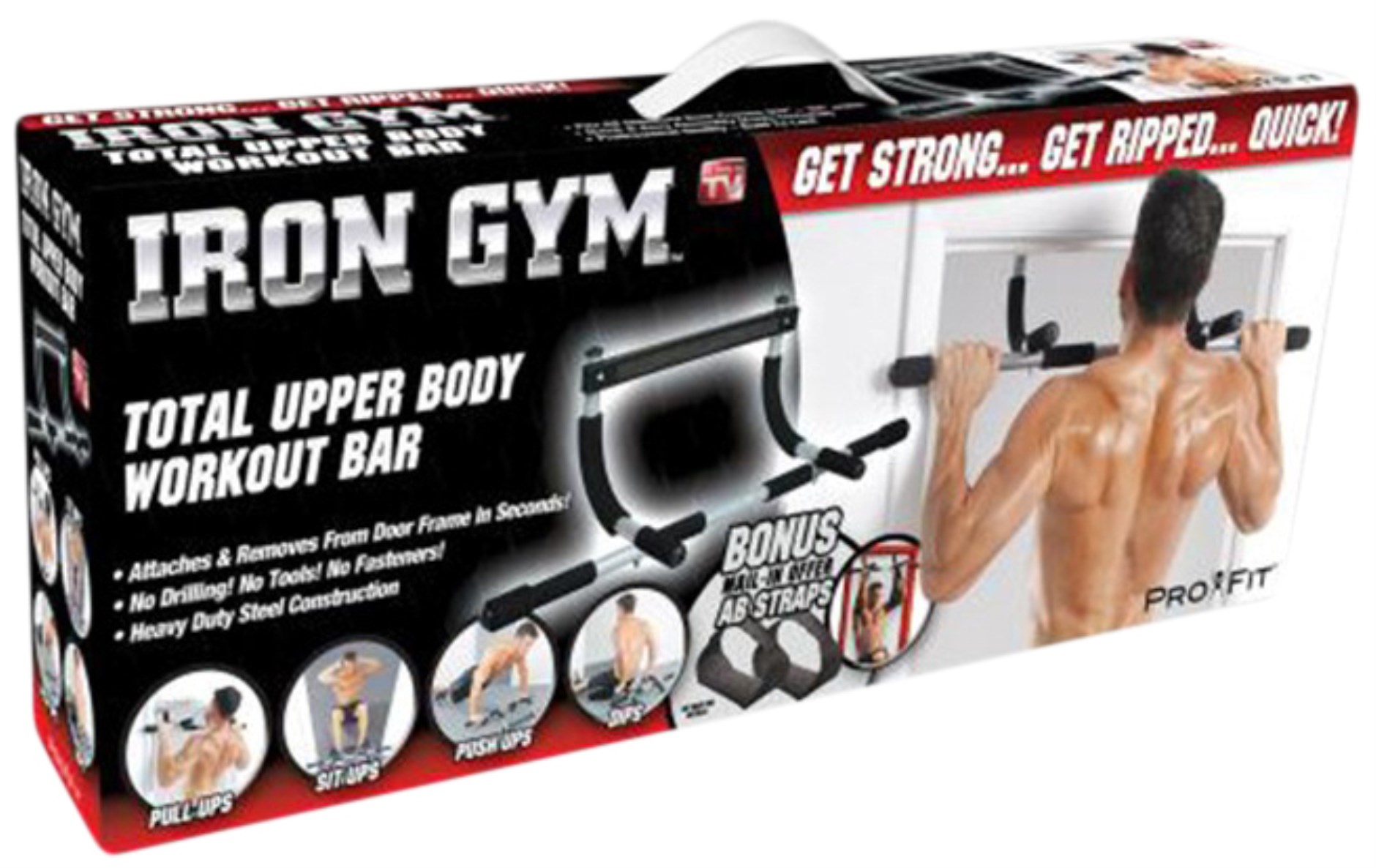 Et yderst populært træningsredskab som gør det muligt at træne store dele af overkroppen derhjemme. Alt hvad du har brug for er en døråbning ? ingen skruer eller hængsler. Ved hjælp af Iron Gym vil du kunne træne arme, mave, ryg, bryst, triceps osv., når det passer dig. To remme som muliggør hængetræning for maven indgår i pakken (Iron Gym Ab Straps. Monteringsværktøj og instruktionsbog medfølger.