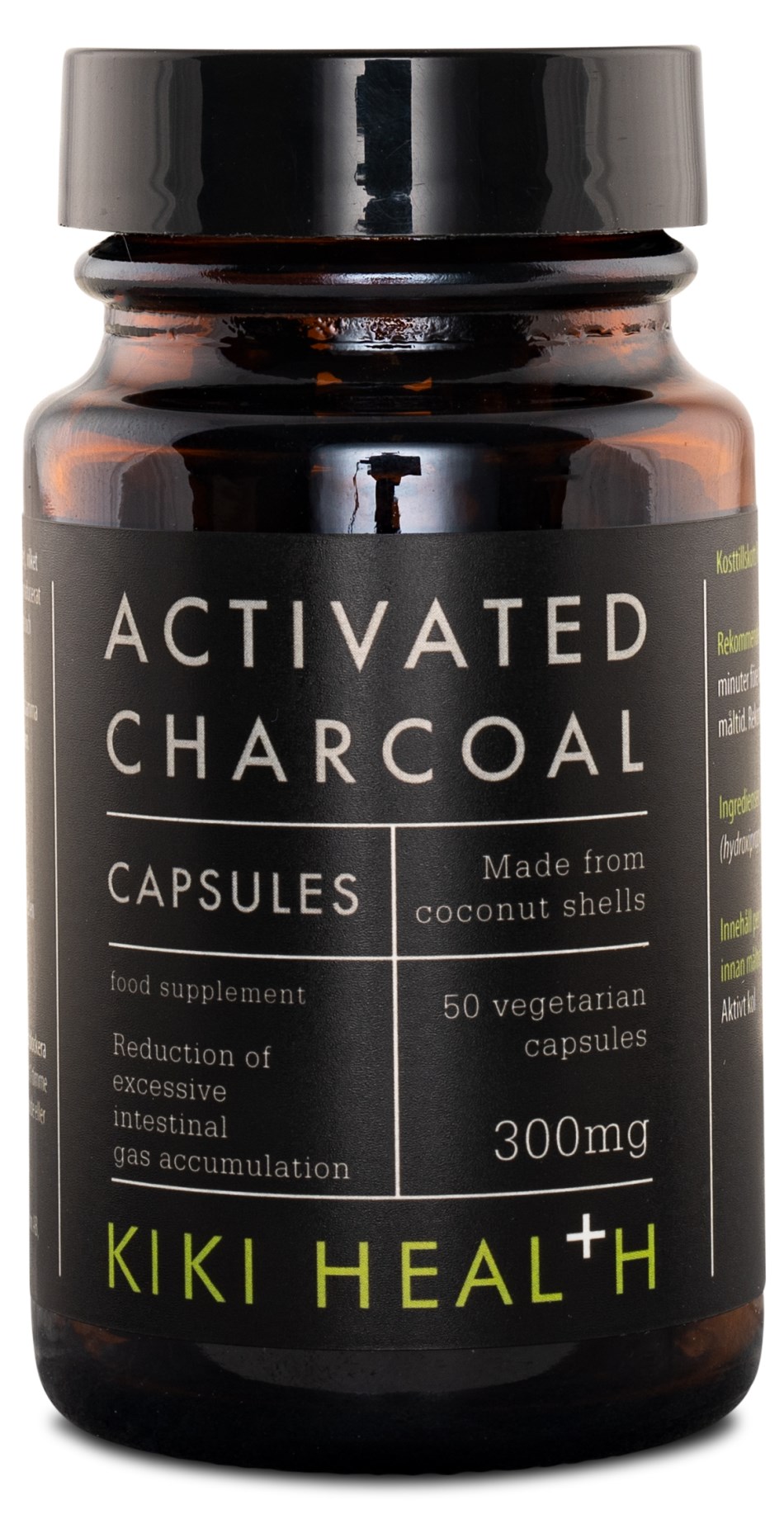KiKi Health Activated Charcoal Caps er kapsler med 300 mg meget fintmalet aktivt kul. Kulstoffet stammer fra kokosnøddeskaller og er formalet til 5-10 mikrometer. Dette giver kullet en meget stor absorptionsflade, hvilket gør det effektivt til at absorbere uønskede stoffer. Kullets evne til at absorbere andre stoffer gør, at det blandt andet anvendes i hudplejeprodukter, tandpasta og tandblegning samt i sundhedssektoren ved forgiftninger. KiKi Health Activated Charcoal Caps kommer i praktiske kapsler, der er særligt gode til at lette fordøjelsen og reducere oppustet mave efter måltider.