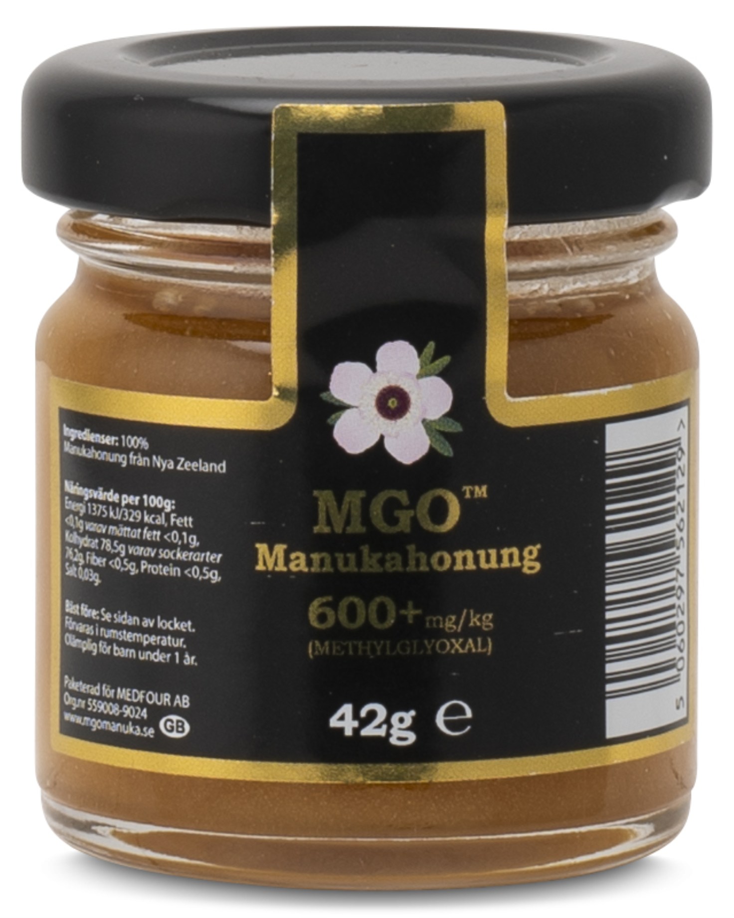 Nysgerrig på manukahonning? MGO® Manuka honning 42 g er en praktisk lille krukke med manukahonning - perfekt til at prøve eller tage med på rejse. Ligesom den større krukke MGO Manukahonning 250 g, indeholder den 100 % Leptospermum Scoparium manukahonning med MGO 600+, rig på det bioaktive stof methylglyoxal (MGO). Honningen er naturligt sød og kan bruges i mad og drikke eller som støtte under forkølelsestider. Den unikke antibakterielle aktivitet adskiller den fra almindelig honning.