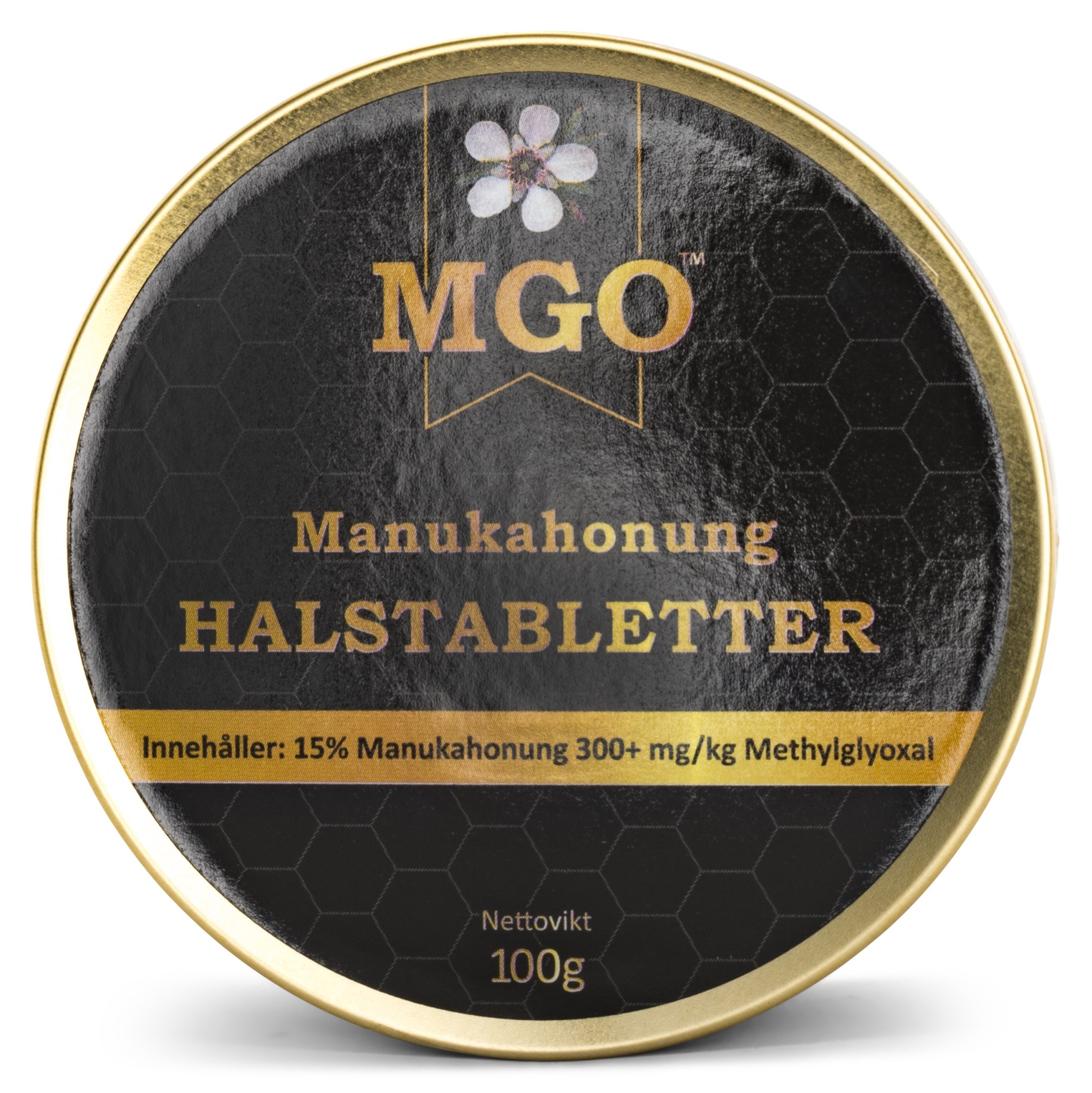 MGO® Halstabletter Manukahonung 300+ er vidunderligt gode halstabletter med ægte manuka honning. Manuka honningen stammer fra New Zealand, og er især rig på det bioaktive stof MGO (methylglyoxal). Dette stof kan gøre det vanskeligere for bakterier at fæstne sig til celler, hvorfor manuka honning bruges i de kolde måneder, i tilfælde af ondt i halsen. MGO® halstabletter Manukahonung indeholder ingen unødige tilsætningsstoffer, men derimod mindst 15% manuka honning af eksklusiv kvalitet, og med 300 mg MGO per kilo.