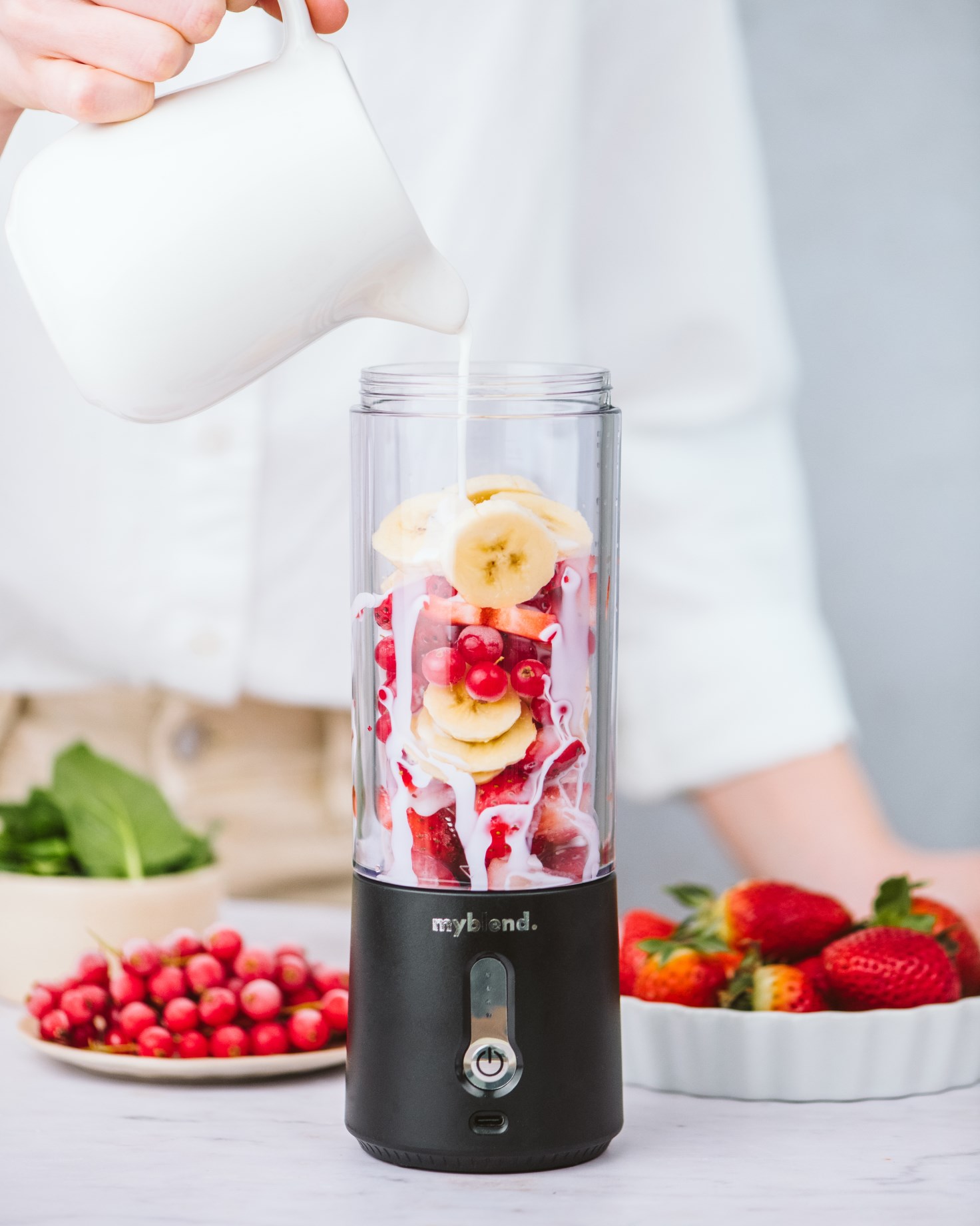 Myblend 3 Portable Blender er en bærbar og ledningsfri blender, der er perfekt at bruge både derhjemme, på arbejdet, i fitnesscentret eller på farten. Den har en kompakt og nem størrelse, der gør den enkel at have med i tasken. Myblend 3 Portable Blender har desuden en avanceret turboteknologi, der gør den meget effektiv – på kun 20 sekunder kan du blende alt fra smoothies og proteinshakes til babymad, dressinger og saucer. Mixeren oplades via USB (kabel medfølger) og en opladning rækker til, at du kan bruge blenderen 15+ gange..
