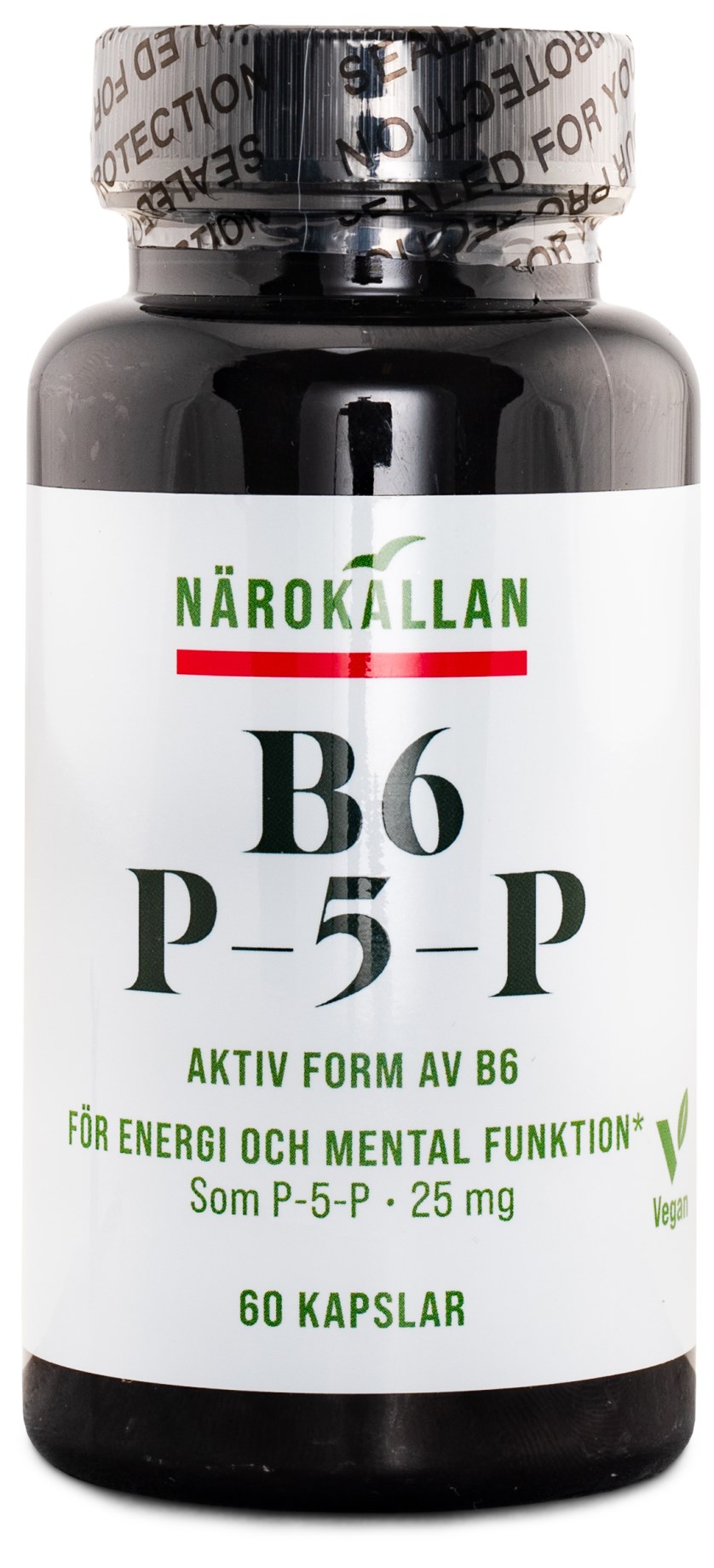 Närokällan B6 P-5-P er et kosttilskud med en særlig biotilgængelig og letoptagelig form, af det vandopløselige vitamin pyridoxin. Dette vitamin spiller en vigtig rolle i stofskiftet af protein og glykogen, og bidrager også til et normalt fungerende immunsystem og til den normale dannelse af røde blodlegemer. I Närokällan B6 P-5-P kommer B6-vitamin i den aktive form P5P, hvilket betyder, at det allerede er i en form, som kroppen kan optage. Dette er forskelligt fra for eksempel pyridoxin hydrochlorid og pyridoxal, da disse typer B6 skal nedbrydes i leveren, før kroppen kan gøre brug af dem.