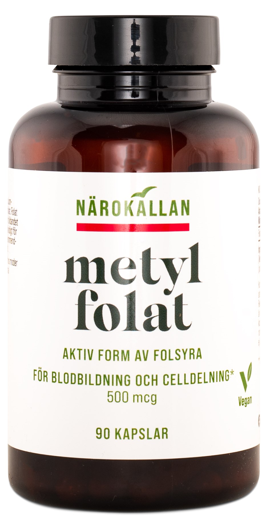 Närokällan Metylfolat er et supplement af methylfolat, som har en vigtig funktion i kroppen i dannelsen af hæmoglobin i de røde blodlegemer, men også til celledeling og proteinproduktion. Folat som methylfolat er den bioidentiske og naturlige form, som kroppen selv bruger, og som ikke behøver at blive konverteret, før den kan optages af cellerne, i modsætning til folinsyre, som ofte anvendes i stedet.Dette er den syntetiske version, som skal konverteres for at det kan udnyttes af kroppen.