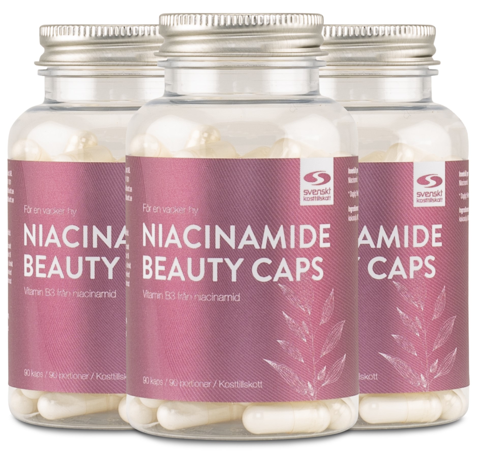 Niacinamid anses for at være et sikkert, vel tolereret stof og anvendes ofte i kosmetik. Til en vis grad kan niacin produceres af kroppen selv, men i meget lave doser. De højeste niveauer af niacin findes i proteinrige fødevarer som fisk, kylling og kød. Andre gode kilder er nødder, bælgfrugter og fuldkornsprodukter. Der findes også produkter beriget med niacin. Ønsker du at give din hud lidt ekstra kærlighed, er et tilskud et godt alternativ.