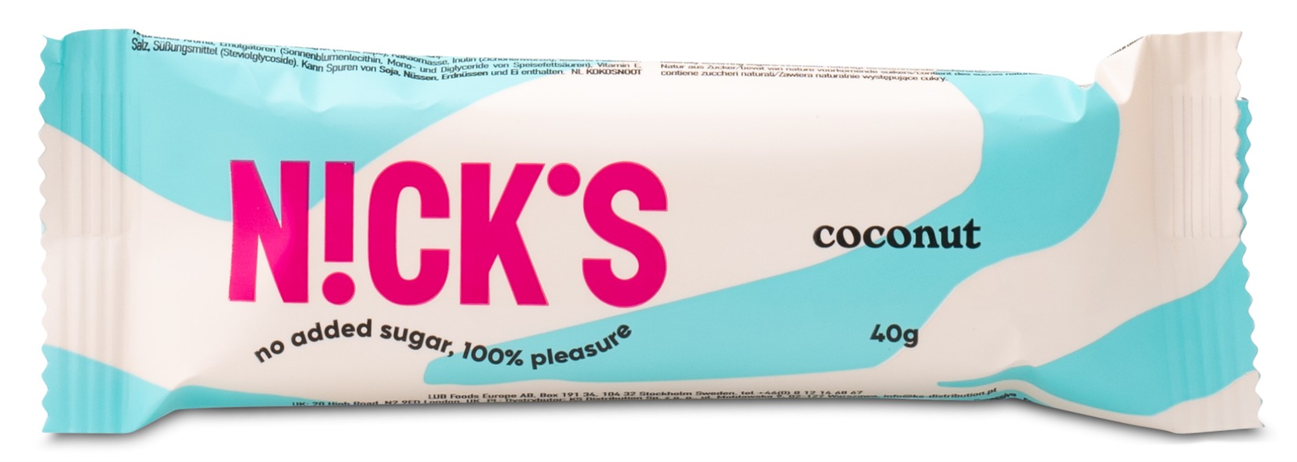 NICK´s har gjort det igen og har produceret en lækker og saftig kokosbar med chokoladeovertræk uden tilsat sukker, og som smager mindst lige så godt som traditionelt slik med kokos. NICKs Coconut er helt fri for tilsat sukker og indeholder i stedet NICKs specielle blanding af birkesukker, erythritol og steviaekstrakt. NICKs chokoladebar med kokos indeholder kun tre gram kulhydrater, hvilket betyder, at der kun er tre gram kulhydrater pr. Bar, som påvirker blodsukkeret.