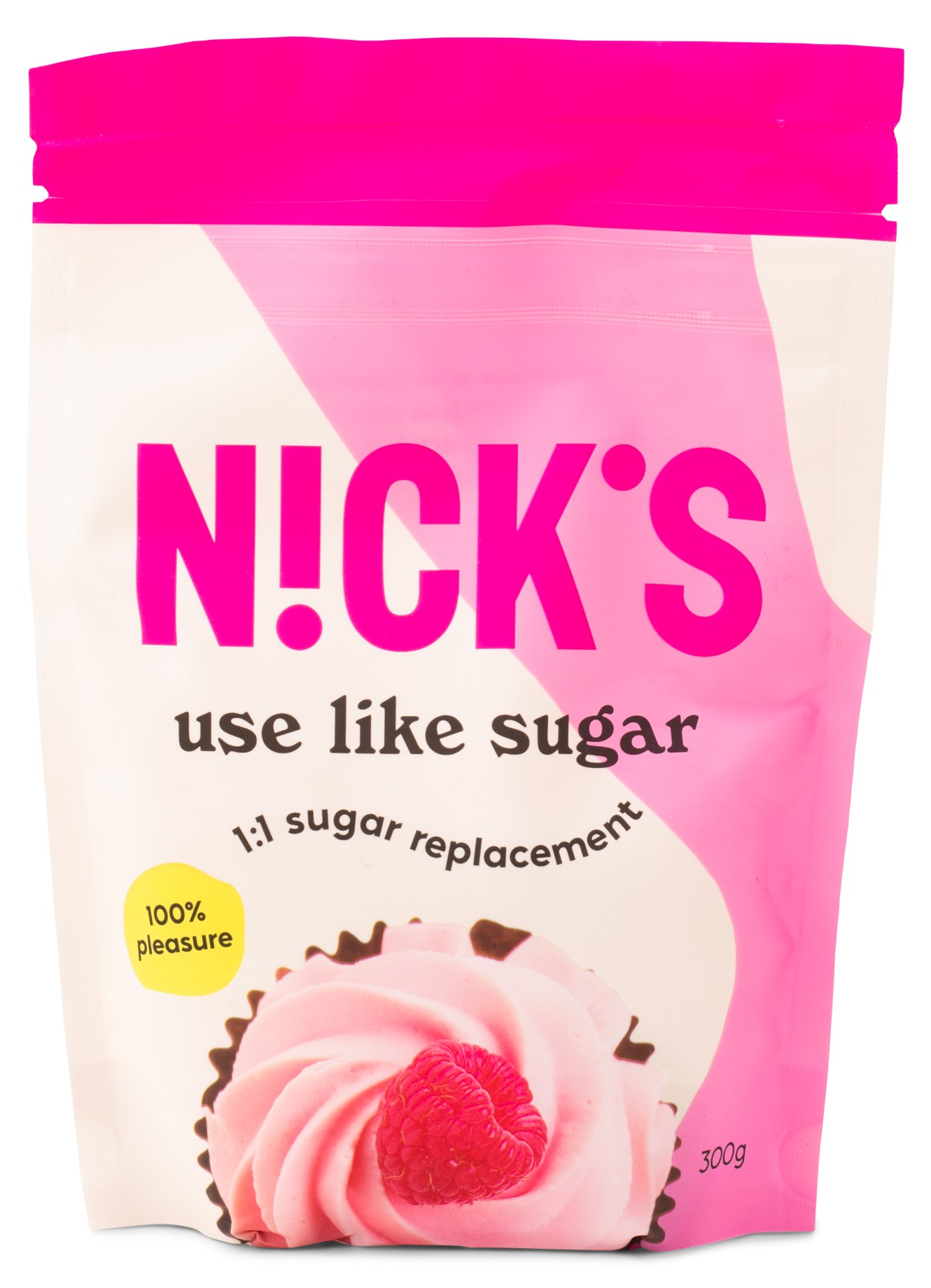 Nick's Use Like Sugar er en erstatning til sukker, der giver dine desserter, kager og drikke en sød, sukkerfri smag. Produktet inkluderer blandt andet steviolglycosider, søde majsfibre og xylitol (også kendt som birkesukker) i en velafbalanceret blanding. Formålet med blandingen er at få en smag, der minder mest muligt om sukker, men uden at påvirke blodsukkerniveauet. Dette gør Nick's Use Like Sugar velegnet til både dig, der har en kaloriefattig diæt, eller dig, der vil skære ned på sukkerindtaget, da blandingen indeholder 70% færre kalorier sammenlignet med hvidt sukker.
