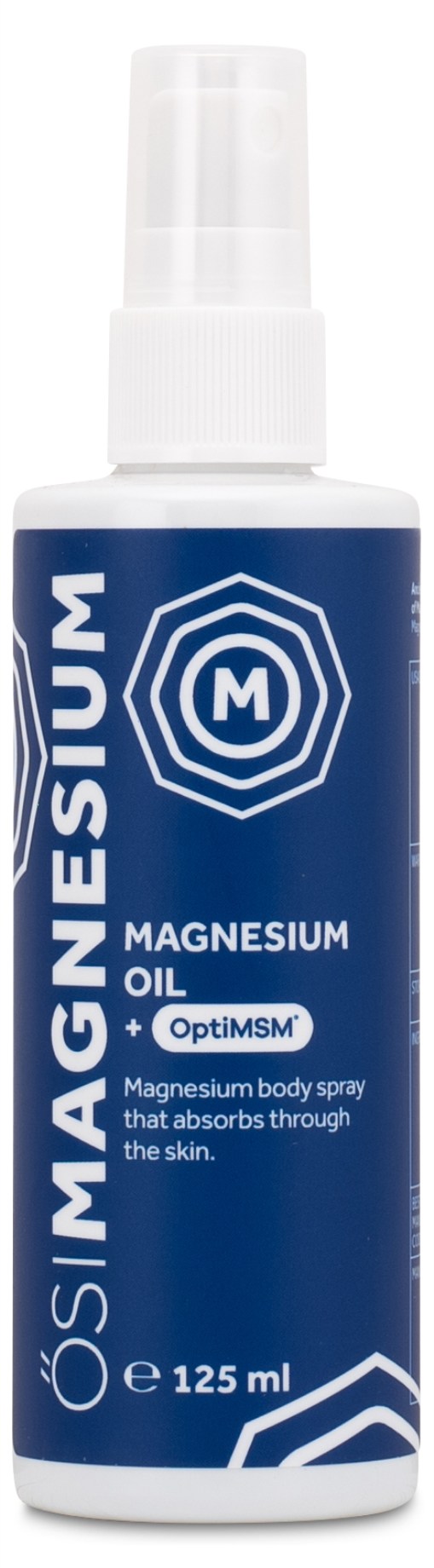 OsiMagnesium har skabt en hel serie af innovative magnesiumtilskud med bodylotion, hudolie og massageolie med magnesium, som optages via huden og transporteres videre til muskler og led. OsiMagnesium Massageolie + OptiMSM indeholder en sammensætning af magnesium og MSM, som smøres hen over musklerne hver dag. En halv teskefuld (2,5 ml) indeholder hele 257 mg elementært magnesium (den mængde, som kroppen kan optage) og 312 mg OptiMSM. Magnesium er et vigtigt mineral, som bl.a. bidrager til musklernes afslapningsevne, hjælper med at beskytte cellerne og fremmer et normalt immunforsvar. MSM forekommer naturligt i kroppens led og er en form for svovlforbindelse.