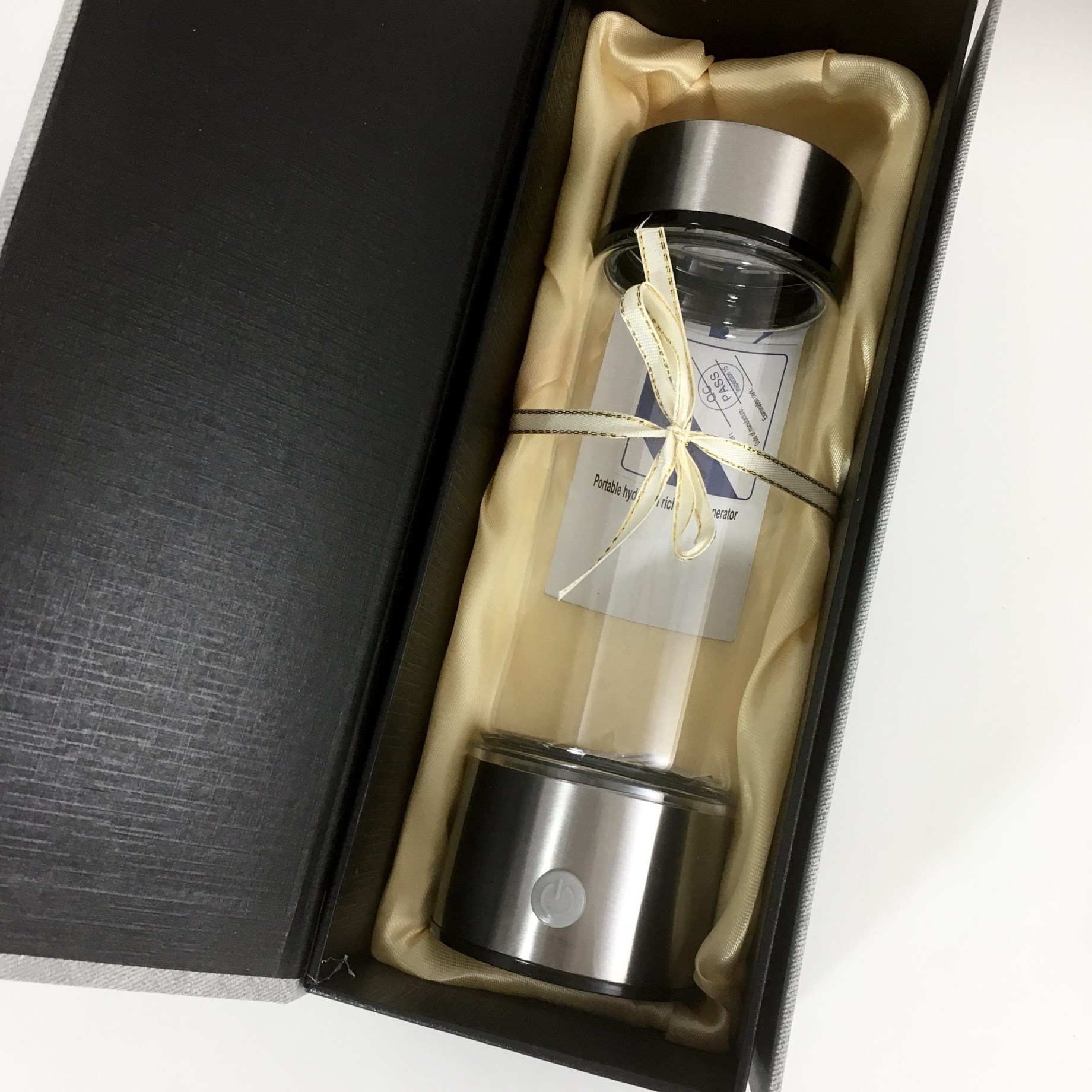 PlanetsOwn H2 Bottle Hydrogen er en praktisk vandflaske, der giver dig mulighed for at lave dit eget Hydrogenaktiverede vand derhjemme. Brintvand er rent vand tilsat brintmolekyler, som i dette tilfælde skabes ved elektrolyse direkte i flasken. Resultatet er et lugtfrit, farveløst og smagløst vand, der er sikkert at drikke for både voksne og børn. Du fylder blot flasken med vand og oplader den derefter med det medfølgende USB-kabel. Efter cirka 2-3 minutter brintmolekylerne fyldt i vandet, og det er klar til at drikke. PlanetsOwn H2 Bottle Hydrogen har et stilrent design i rustfrit stål og glas og leveres i flot gaveæske.