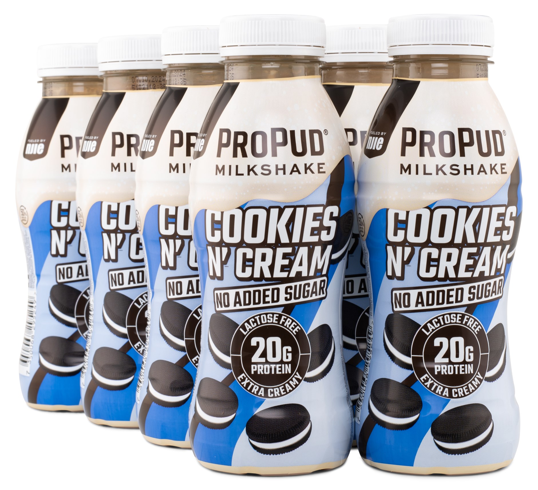 Endelig er den berømte proteinbudding ProPuds efterfølger her! ProPud Milkshake er en luksuriøs og cremet proteinmilkshake, der kommer i flere forskellige smagsvarianter, som alle har en god og mild sødme. Produktet er uden tilsat sukker og er laktosefri (<0,01 g laktose/100 g). Med sit høje proteinindhold på 20 g protein/flaske er det en fremragende drik efter træning, men kan også nydes på en varm sommerdag, eller når du bare har lyst til noget virkelig lækkert.