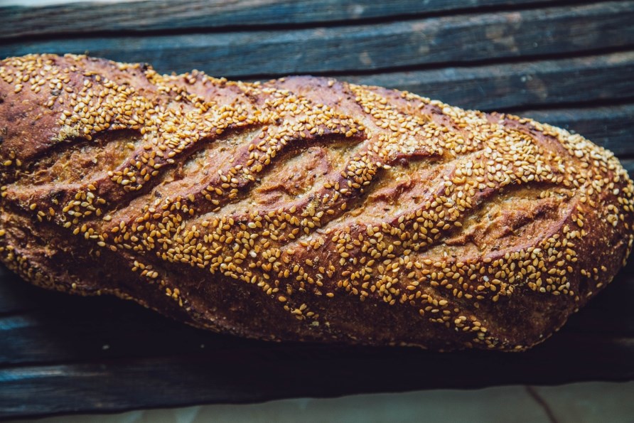 Forvarm ovnen til 160 °C. Kør æggene og kvarken i en foodprocessor i ca. 20 sekunder. Hæld resten af ingredienserne i, undtagen sesamfrøene, kør på lav hastighed i ca. 1 minut. Hæld dejen i en brødform og drys sesamfrøene over brødet. Placer det midt i ovnen i ca. 45 minutter. Tag det ud og lad det køle af.