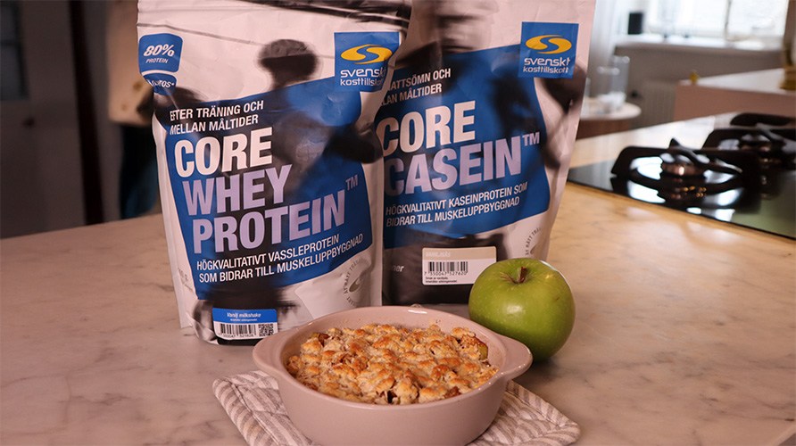 Har du lyst til noget luksuriøst og velsmagende - fyldt med protein - Rør en æblekage sammen på bare få minutter med vores svenske ambassadør, Fiddelie Bråthes, lækre opskrift med æble, kanel og Core Whey Protein.