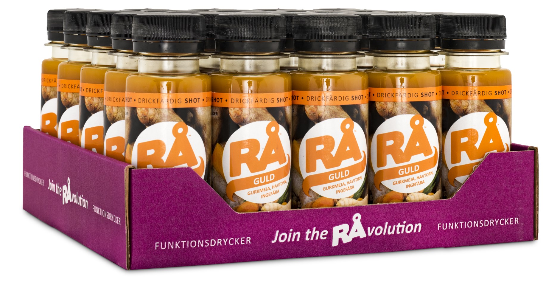 Rå Gurkemeje er en gylden frugtdrik specielt udviklet til dig, der værner om, hvad du drikker. Rå Gurkemeje er baseret på frugter og krydderier, der tilsammen giver en række næringsstoffer og en intens smagsoplevelse. Her indgår syrlig havtorn sammen med søde æbler og pærer samt ingefær, der giver et ekstra pift. Den gyldne farve kommer fra gurkemeje og gulerod. RÅ Gurkemeja er usødet og naturlig - helt fri for tilsætningsstoffer.