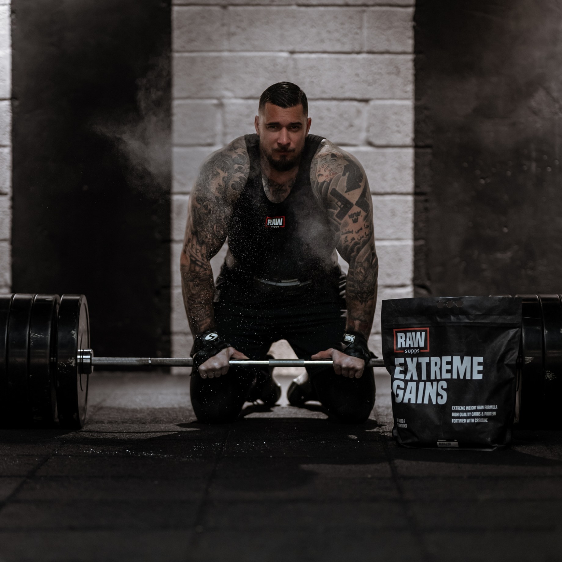RAW Extreme Gains inderholder 40 g protein pr. Portion og hele 640 kcal. Dette inkluderer masser af energi tilsat MCT-fedt, Muscle Creatine Injectors blandningen gør dig fyldig og stor. Perfekt til bodybuildere, atleter og kampsportsfolk, der ønsker at tage på i vægt og giver musklerne det, de har brug for, for at opnå de ultimative gains!