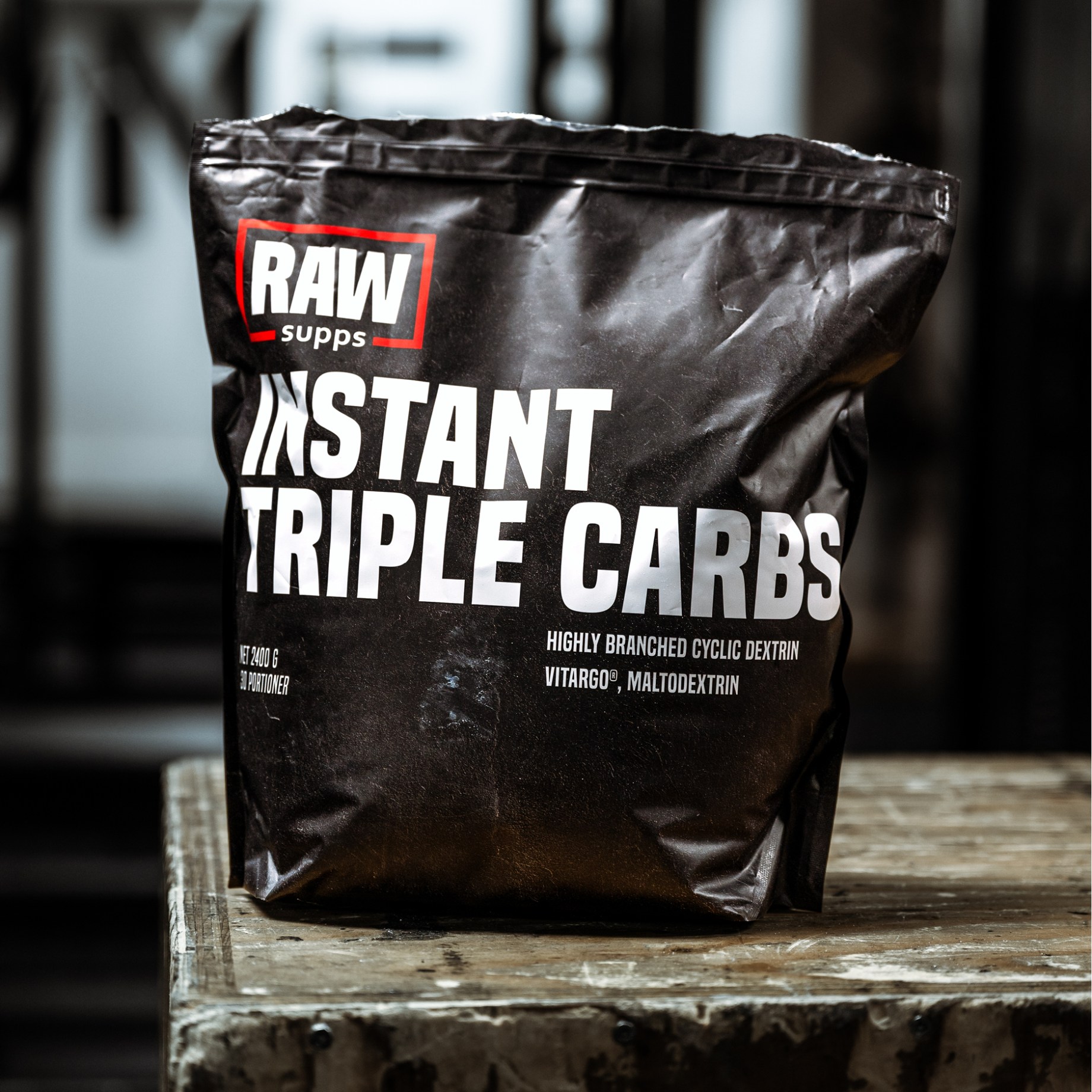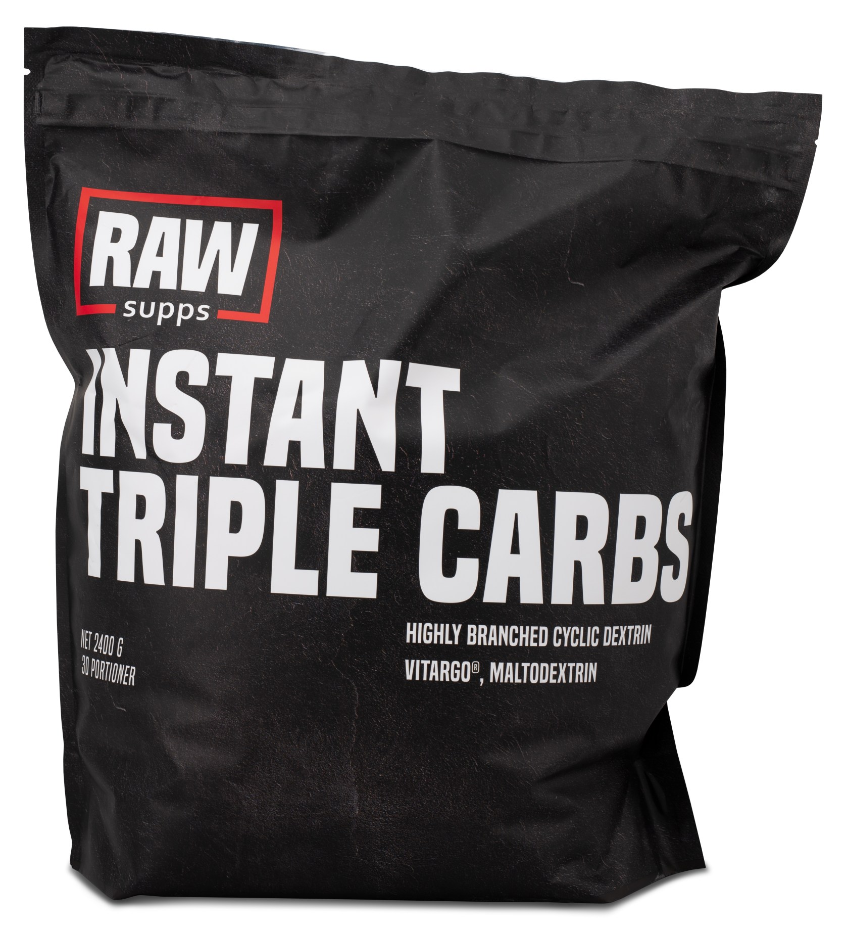 RAW Instant Triple Carbs indeholder maltodextrin, Vitargo® og højforgrenet cyklisk dextrin (highly branched cyclic dextrin). Disse tre effektive kulhydrater hjælper kroppen med hurtigt og skånsomt at fylde glykogenlagrene op.