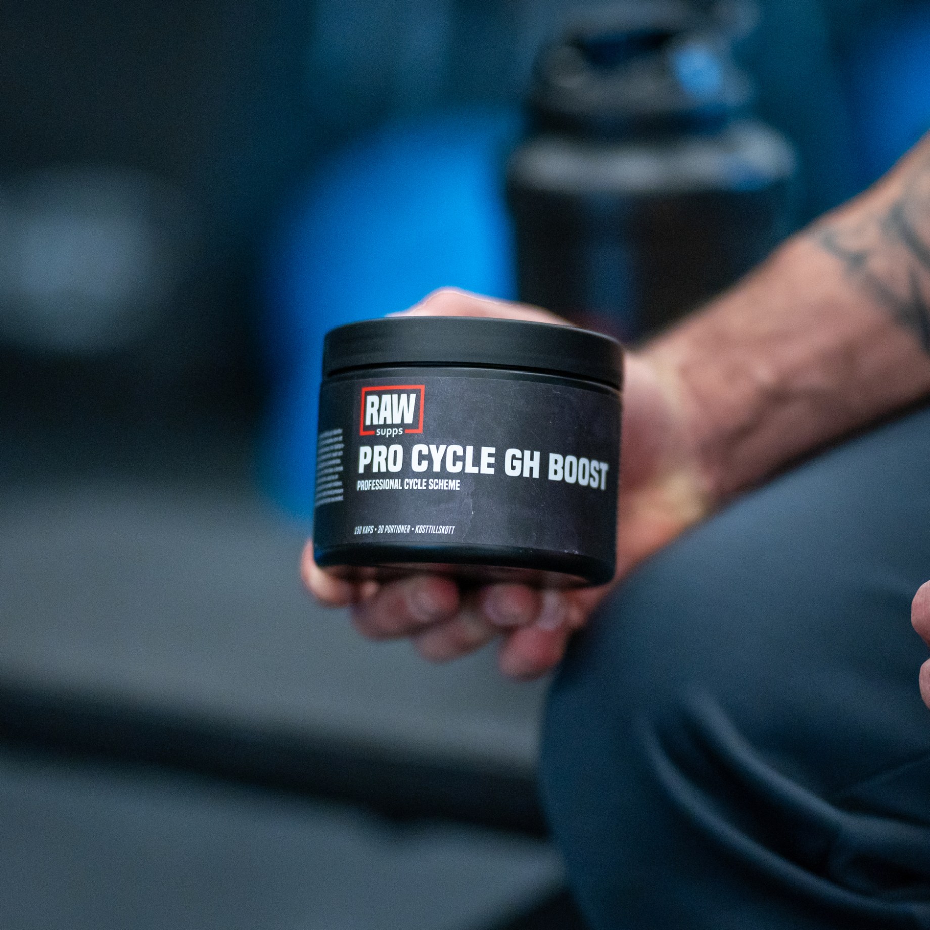 RAW Pro Cycle GH Boost er en del af vores serie RAW Pro Cycle - en serie produkter til dig, der vil have store resultater i fitnesscentret med højpotente stoffer, der er tilpasset til at kunne tages i cyklusser. Brug RAW Pro Cycle GH Boost i cykler på 4-8 uger alene eller sammen med de øvrige produkter fra RAW Pro Cycle: Adreno Test, Estro Block og Corti Block. Serien indeholder også RAW Pro Liver, et supplement udviklet specielt til dig, der udsætter din krop for stor belastning.