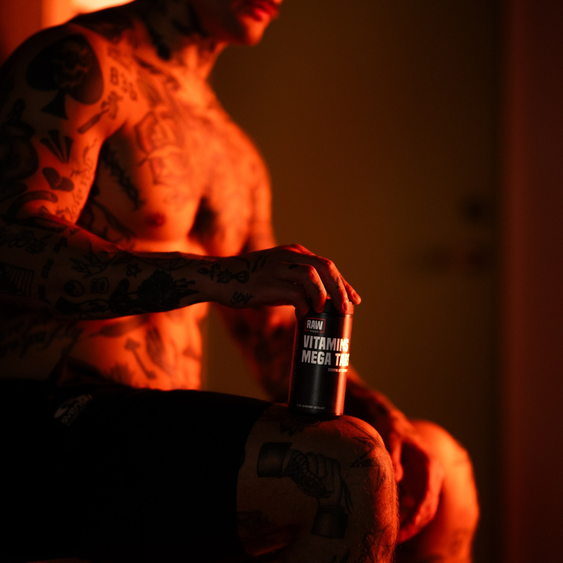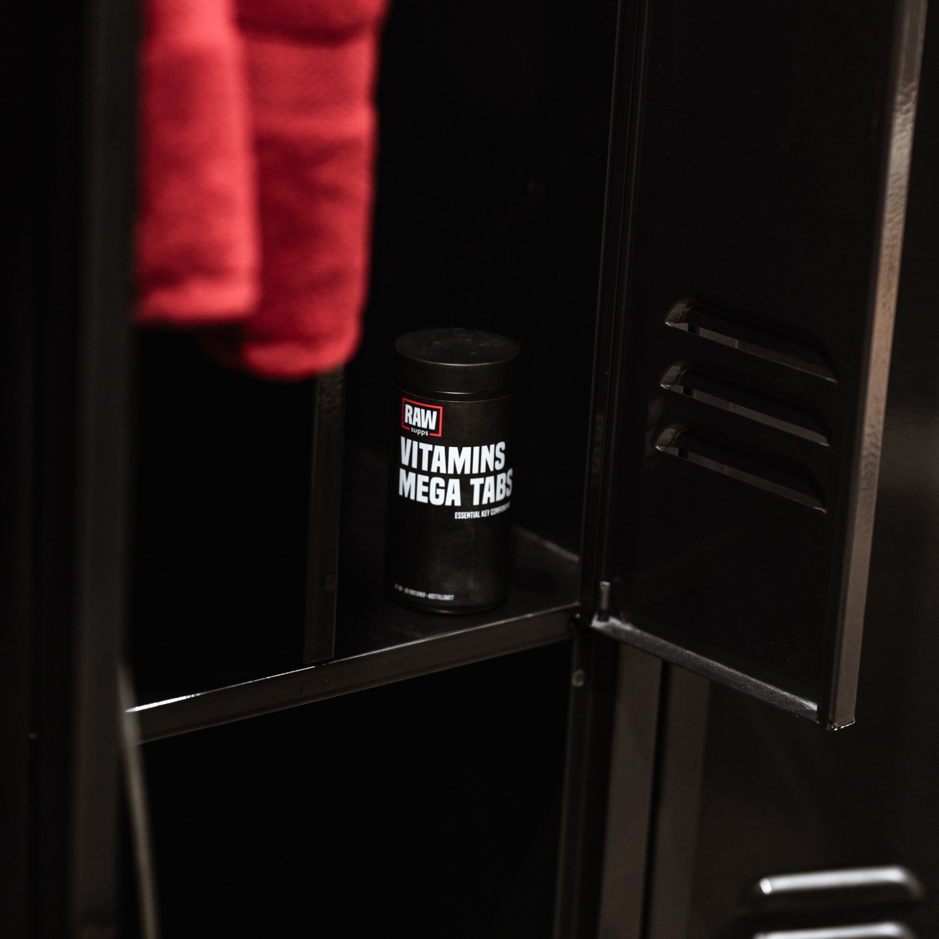 Når du yder maksimalt, har kroppen brug for de rigtige byggesten. Hård træning og en aktiv livsstil kræver meget af kroppen og din kost. RAW Vitamins Mega Tabs leverer kompromisløs påfyldning af dine depoter. Blandt andet indeholder tabletterne vitamin A, C, D, E og K samt et bredt spektrum af B-vitaminer. For de bedste resultater indeholder tilskuddet også Q10 og PABA. Vitamin A, C og D bidrager til et normalt immunforsvar, hvilket er ekstra vigtigt under perioder med hård træning. C-vitamin bidrager desuden specifikt til et normalt immunforsvar under og efter intens fysisk indsats.