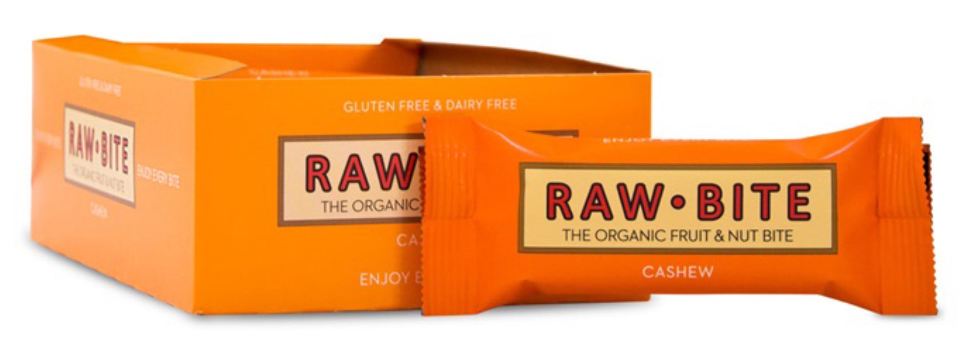 RAWBITE med cashew er en helt økologisk og 100 % naturlig bar. Den indeholder kun rå ingredienser som frugt og nødder. Den indeholder ingen laktose, gluten, æg, soja, sukker eller kunstige stoffer. Nyd naturens egne råvarer i denne lækre bar!