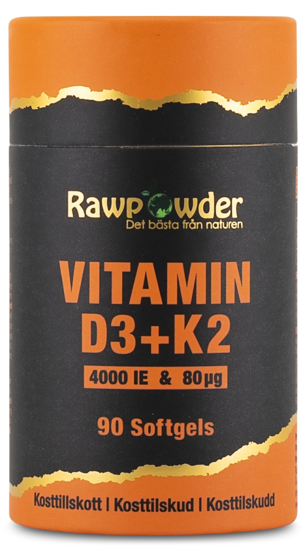 RawPowder Vitamin D3+K2 tilbyder en perfekt kombination af vitamin D3 og K2 i nøje afmålte doser for at give maksimal støtte til knoglesundhed, tandhygiejne og et normalt immunforsvar. Vitamin D3 er afgørende for at regulere kroppens calciumoptagelse, hvilket er nødvendigt for stærke og sunde knogler. Vitamin K2 bidrager til mineraliseringen af knoglerne og understøtter desuden tandhygiejne og blodkoagulation. Den synergistiske effekt mellem D3 og K2 betyder, at D3 øger calciumabsorptionen, mens K2 aktiverer proteiner, der transporterer calcium til de rigtige steder, såsom knogler og tænder, og forhindrer calciumaflejringer i blodkarrene. RawPowder Vitamin D3+K2 indeholder vitamin D3 i den effektive form cholecalciferol (fra lanolin) og K2 som menaquinon-7 (MK-7) (fra natto), som begge er lette for kroppen at optage.