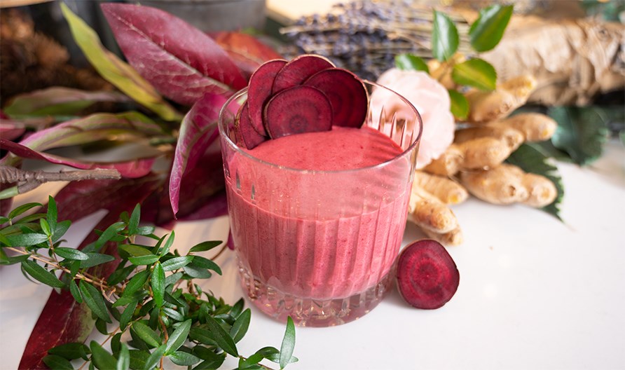 Denne smoothie med rødbeder og ingefær er virkelig nem at lave samtidig med, at den er fuld af lækkerier. Perfekt til at blande sammen til morgenmad eller som en snack!