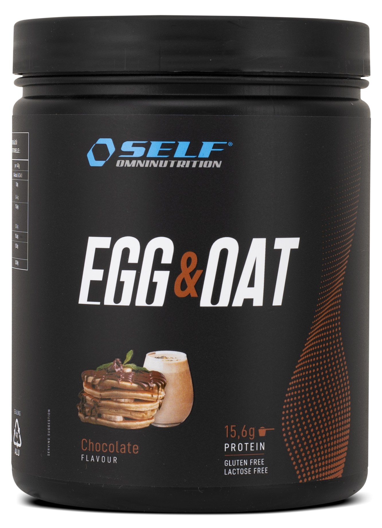 Self Omninutrition Egg & Oat er et kombineret proteinpulver fra æggehvideisolat og havre. Proteinpulveret er fri for både gluten og laktose og er ideelt for dig, der ønsker en proteinrig snack i løbet af dagen. Havren er naturligt rig på fibre, som understøtter en normal tarmfunktion, øger mæthedsfornemmelsen og hjælper med at opretholde normale kolesterolniveauer. Drik det som en hurtig snack eller for at fylde op med protein efter en hård træning.