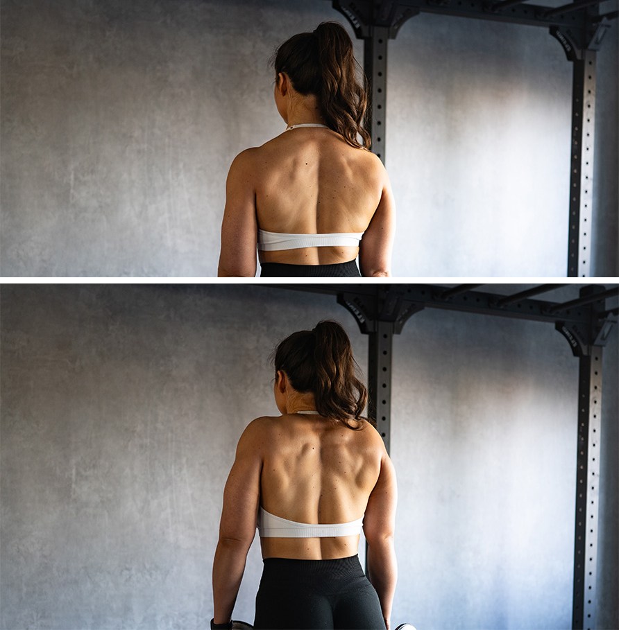 Illustrationer som viser hvilke muskler der aktiveres under en shrug.Den primære muskel, der aktiveres under en shrug, er trapezius, også kaldet traps.