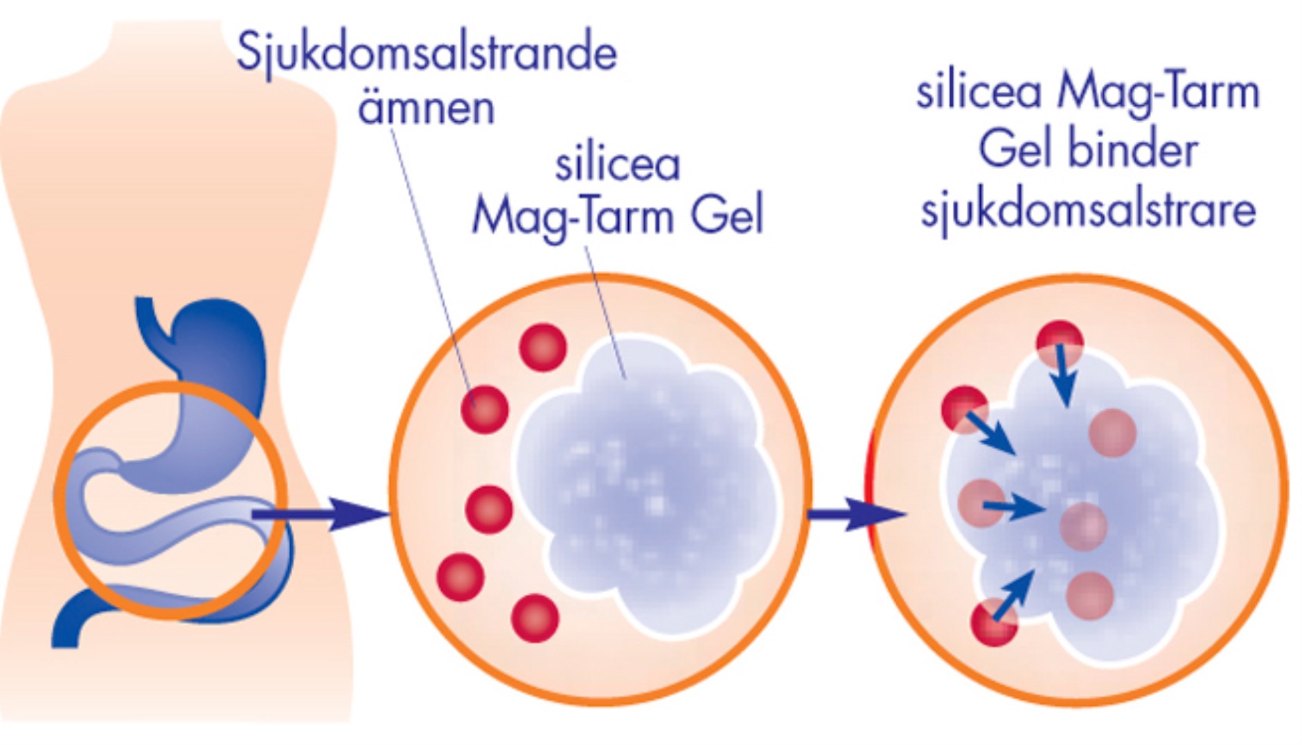 Silicea Mave-Tarm Direkt hjælper dig, når du har problemer med oppustet mave eller luft i maven. Hvis du ofte lider af urolig mave eller har tarmproblemer, kan du få hjælp af Silicea Mave-Tarm. Silicea Mave-Tarm Direkt indeholder kiselgel i form af fintmalet kisel, som sammen med vand og syre har en positiv effekt på en oppustet mave. Geléen har en bindingsevne og binder dermed gasser og andre substanser i maven og tarmene. Kiselgel har også en beskyttende effekt på slimhinderne og hjælper med at lindre forskellige former for mave- og tarmproblemer såsom IBS og halsbrand. Poserne er små og praktiske at have med på rejsen, og produktet kan også anvendes af børn.