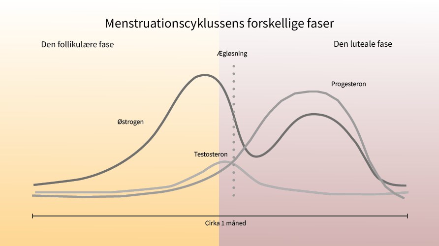 Menstruationscyklussen kan deles ind i den follikulære fase og den luteale fase.