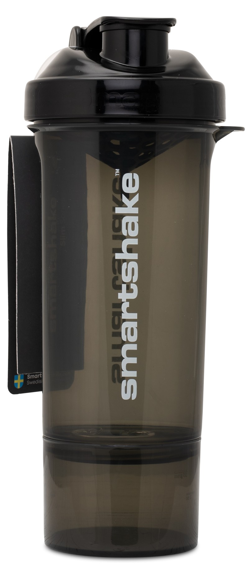 Med SmartShake har du flere muligheder for at tage pulver og shakes med i tasken. Selve shakeren har plads til 400 ml og rummer i alt 500 ml, med en beholder nederst, hvor du kan opbevare mere pulver. SmartShake Slim er en smallere og smartere variant af SmartShake, med smalt greb. Miks beholdere, låg og blandedel fra flere forskellige smartshakes for at skabe den farvekombination, du ønsker, og sæt dit personlige præg på den!
