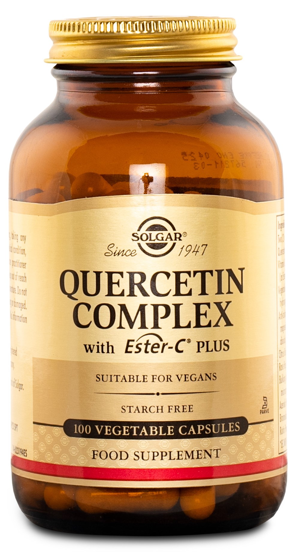 Quercetin er et naturligt gult farvestof, der findes i nogle planter. Stoffet tælles som flavonoider, der fungerer som antioxidanter i kroppen og beskytter cellerne mod nedbrydning. Solgars kompleks indeholder også Ester-C med C-vitamin, der bidrager til et normalt immunforsvar. Forstærket med bromelain og citrus bioflavoner.