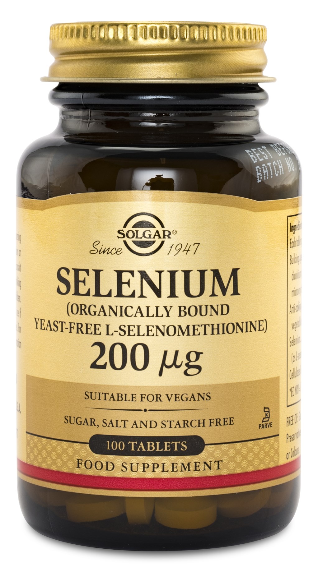 Solgars Selen indeholder 200 mcg selen pr. tablet og er gærfri. Tabletterne er vegetabilske og indeholder ingen kunstige smags- og farvestoffer eller konserveringsmidler.