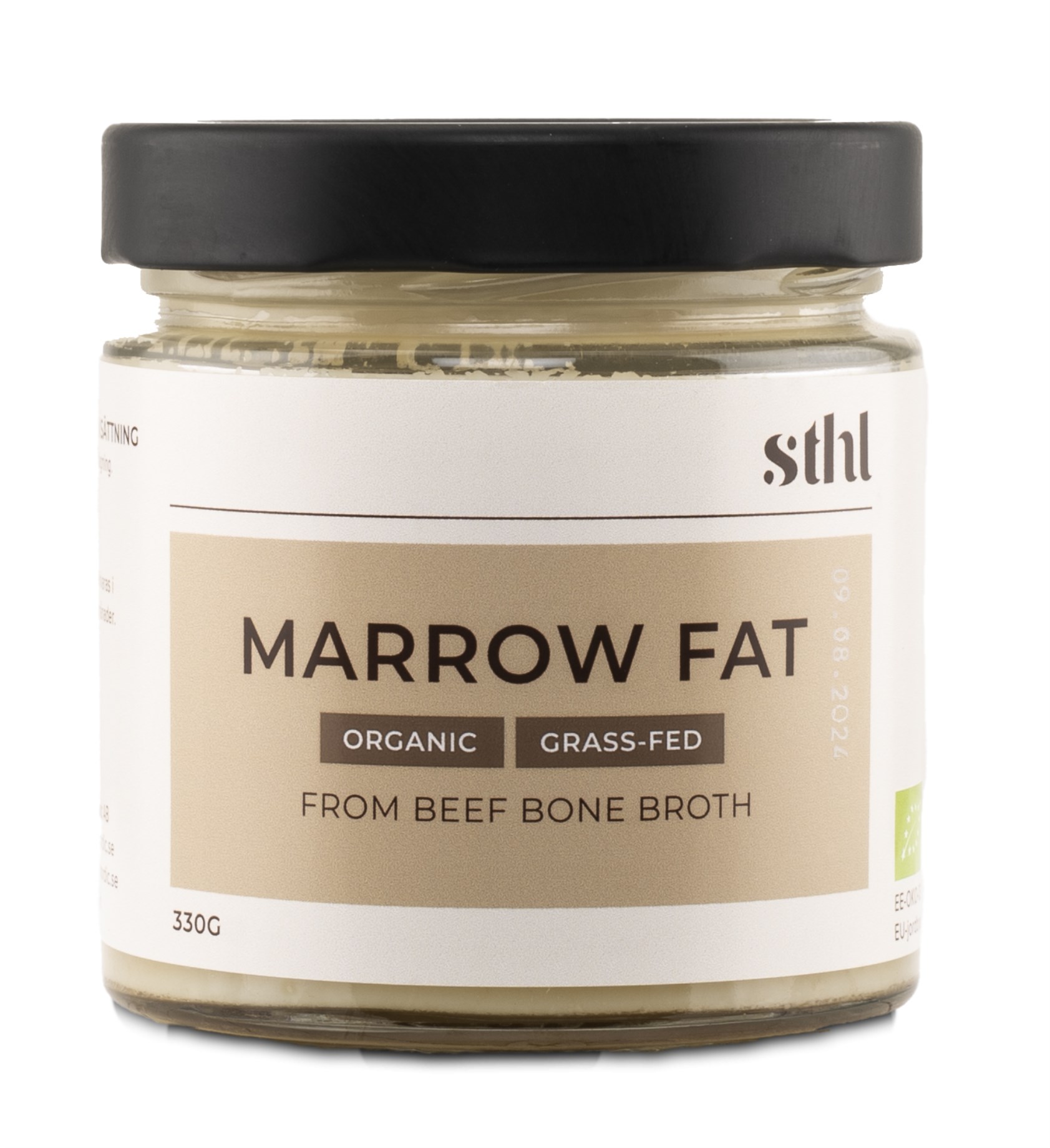 STHL Marrow Fat er et økologisk knoglemarvsfedt, der fremstilles ved at koge benbouillon fra græssende køer. Dette fedt er særligt velegnet til madlavning ved høje temperaturer og udgør et fremragende og naturligt alternativ til de industrielle frøolier, der anvendes til stegning. Oksemarven har en rig og intens smag, der giver ekstra dybde til dine retter.