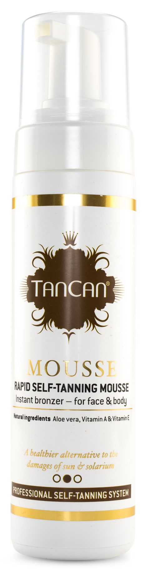 Giv din hud en hurtig og smuk glød med den nye, letanvendelige self-tanning mousse fra TanCan. TanCan self-tanning mousse er en hurtigt virkende selvbrunermousse, som påføres på ren og tør hud after anvendelse af en scrub. Få en dyb og ensartet solbrun kulør, som ser naturlig ud og holder i ca. en uge med selvbruner fra TanCan. For at gøre påføring nemmere kan du anvende TanCan Mitt, en handske som er særligt beregnet til praktisk påføring af selvbruner.