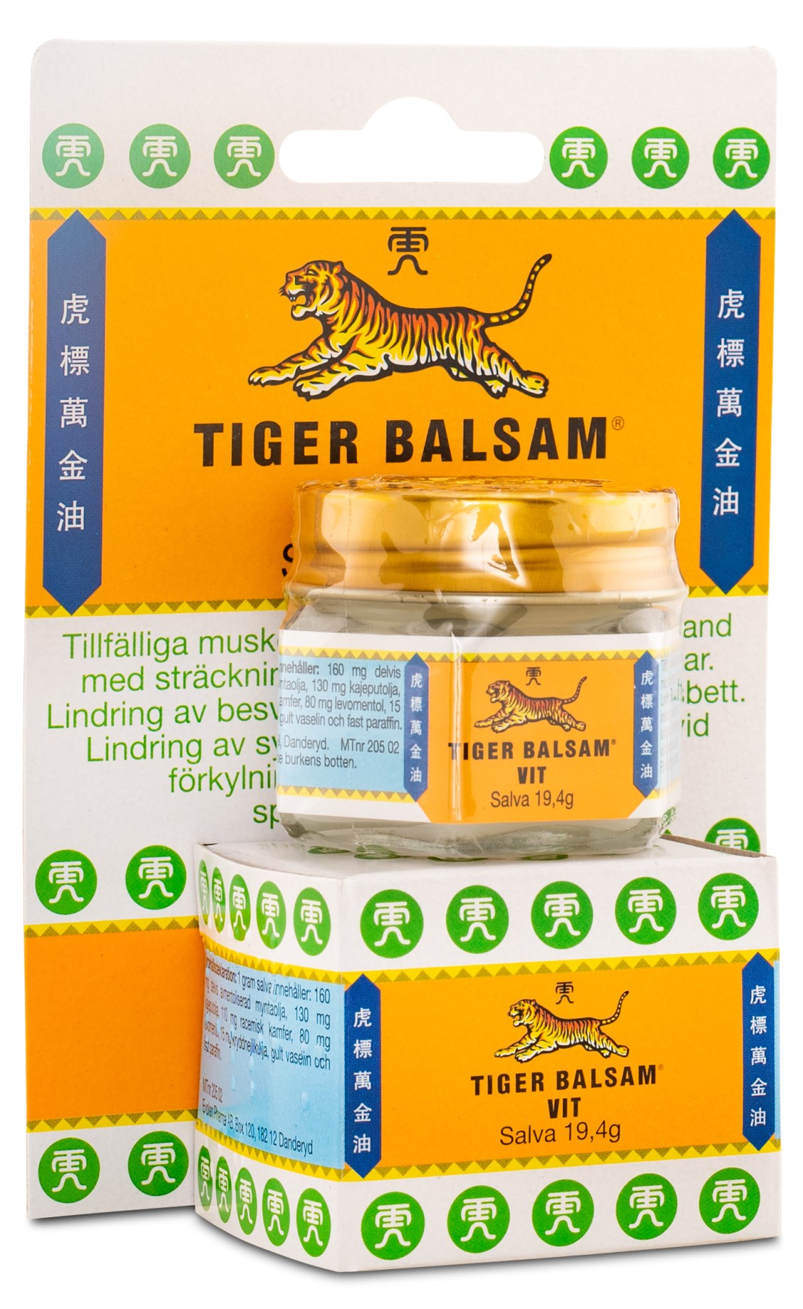 Tiger Balsam Hvid kan anvendes bredt. Den lindrer stivhed og muskelsmerter. Tiger Balsam Hvid har, ligesom Rød, en lidt hårdere konsistens og anbefales derfor til dig, der ønsker at massere produktet ind over længere tid. Den velgørende massage bidrager, sammen med muskelsalven, til at opvarme musklerne inden anstrengelse, alternativt lindrer den stivhed og træningssmerter.