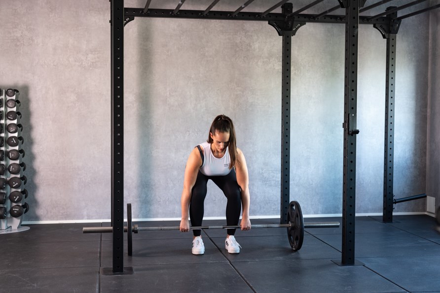Tip! I uge 1 kører du 12 gentagelser i hver øvelse. Uge 2 lægger du mere vægt på, så du kun kan klare 6 gentagelser, men med god og korrekt teknik. Uge 3 går du tilbage til 12 gentagelser, men prøv at have lidt mere vægt på stangen end i uge 1.