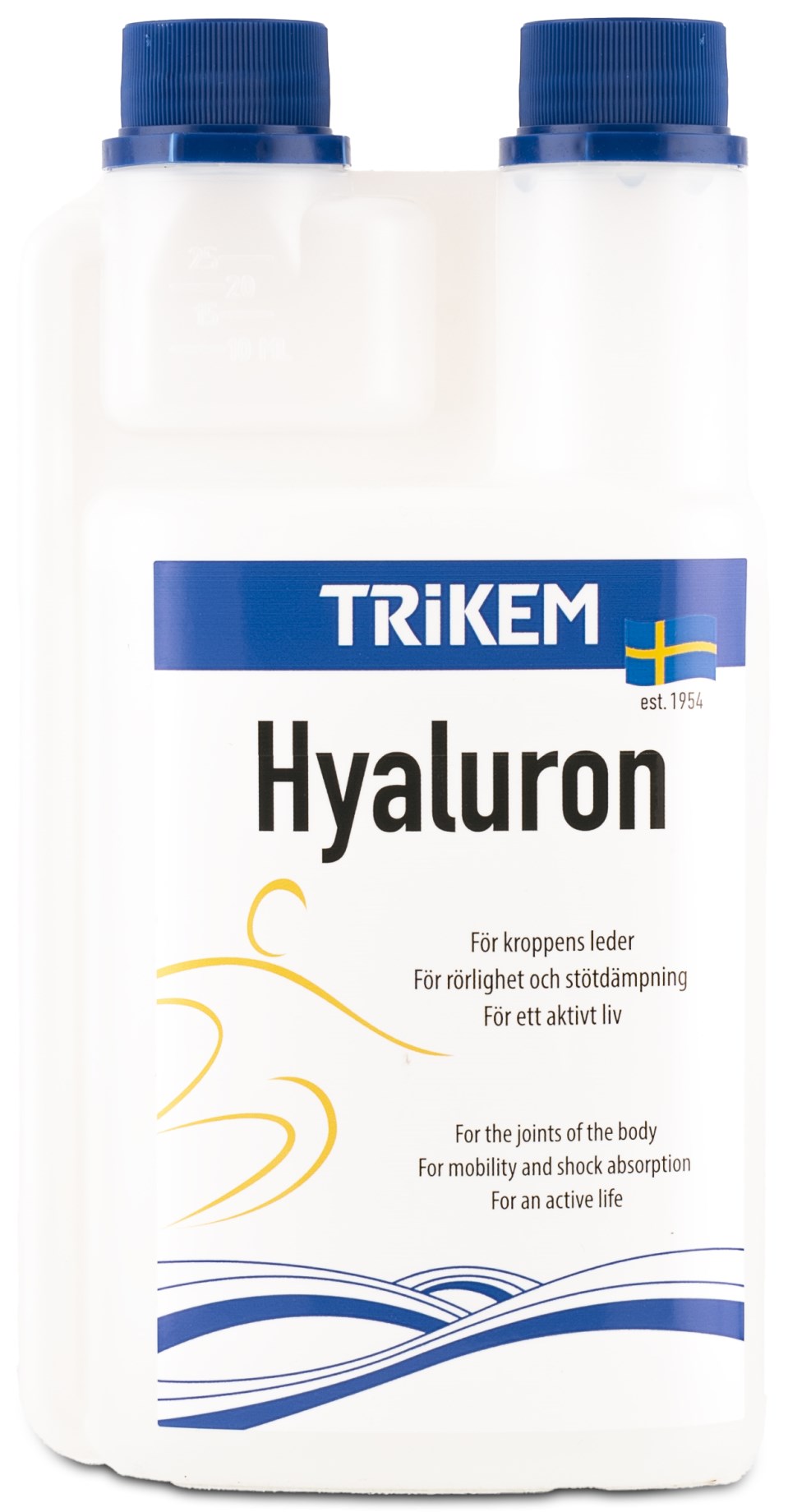 Trikem Human Hyaluron er en flydende opløsning af hyaluronsyre til mennesker. Trikem Human Hyaluron er ideel til dig, der er aktiv eller har belastet dine led i lang tid, samt til ældre, der ønsker at opretholde god ledsundhed. Hyaluronsyre er et stof, som kroppen selv producerer, men produktionen falder gradvist med alderen. Hyaluronsyre findes blandt andet i ledvæsken og er afgørende for, at leddene fungerer optimalt. Hyaluronsyre har evnen til at binde vand, hvilket bidrager til øget viskositet i ledvæsken. Dette resulterer i, at leddene får bedre beskyttelse mod stød og opretholder bevægelighed. Trikem Human Hyaluron består af naturlig, høj molekylær hyaluronsyre og fremstilles i Sverige. Produktet er let at dosere og har en frisk citronsmag.