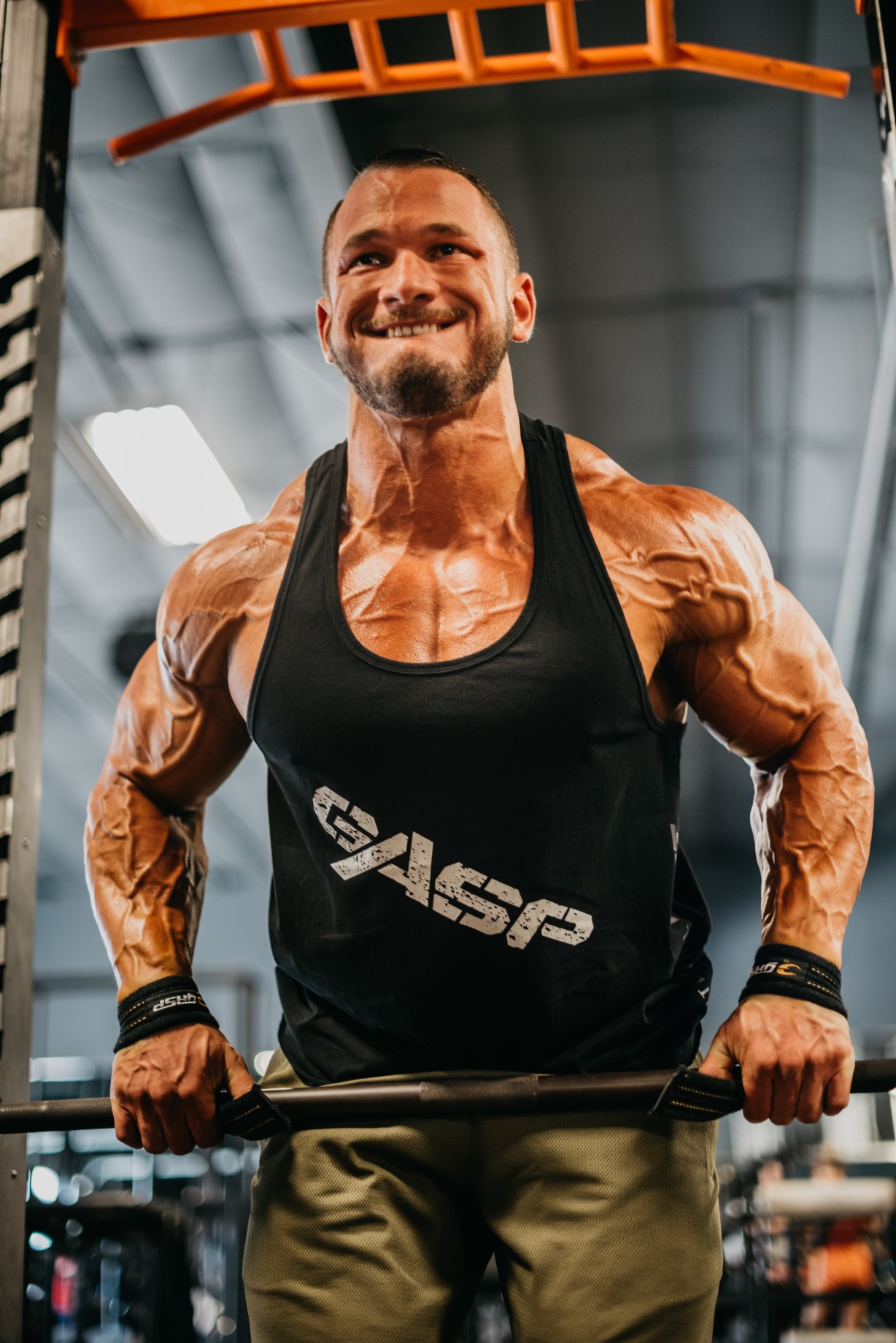 Afslappet tanktop i flere flotte farver med matchende farve i syningerne. Smal ryg og logo på fronten. Giver virkelig plads til en muskuløs ryg og skuldre!