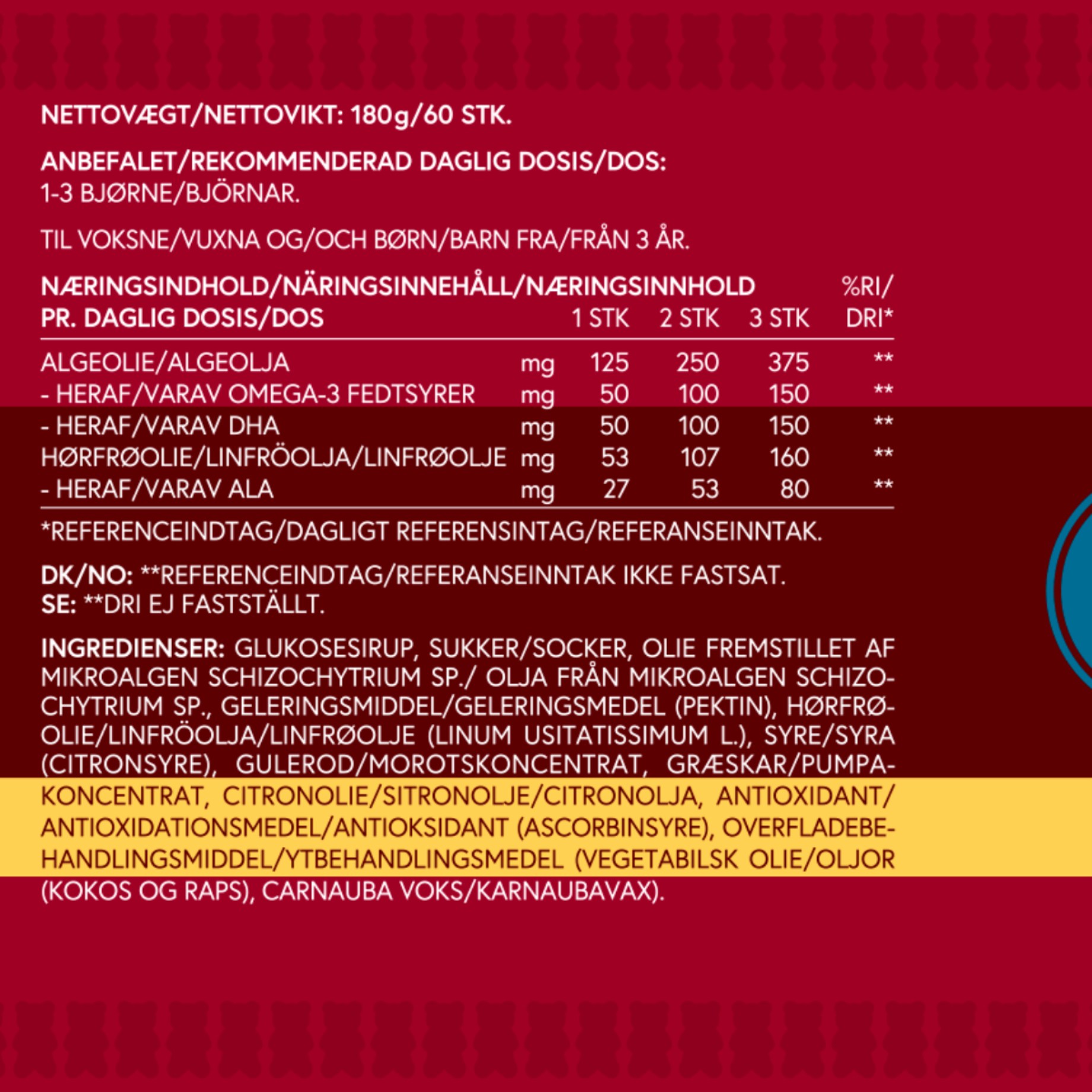 • 3 gummies dagligt